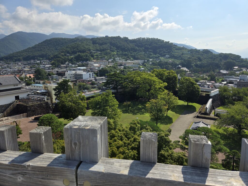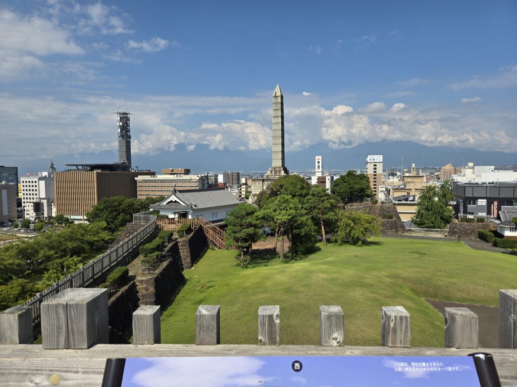 天守閣跡までいけたのだが、市街一面を見渡せて気分がめっちゃいい