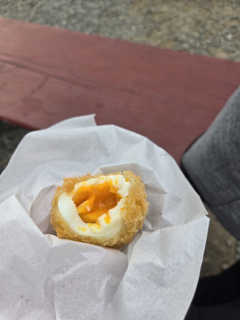 見た目通り外はサクッと中は半熟でうまい。塩加減もしょっぱすぎなくていい