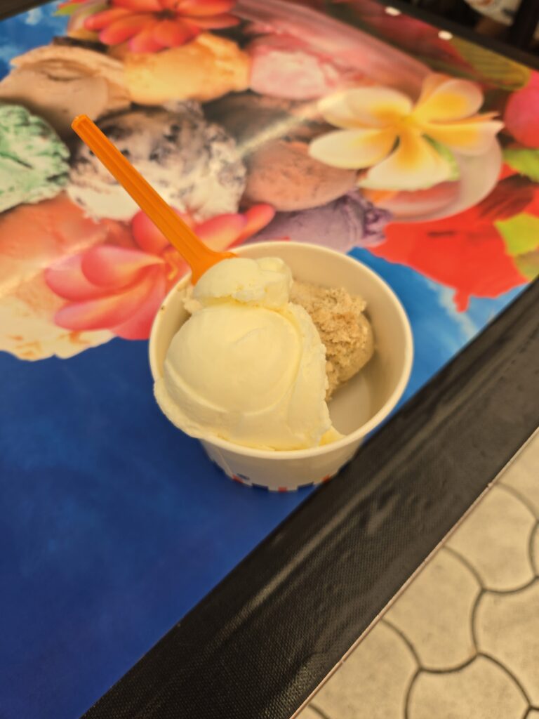ブルーシールアイス。葛餅とシークワーサー。もちもちしてて美味しい。