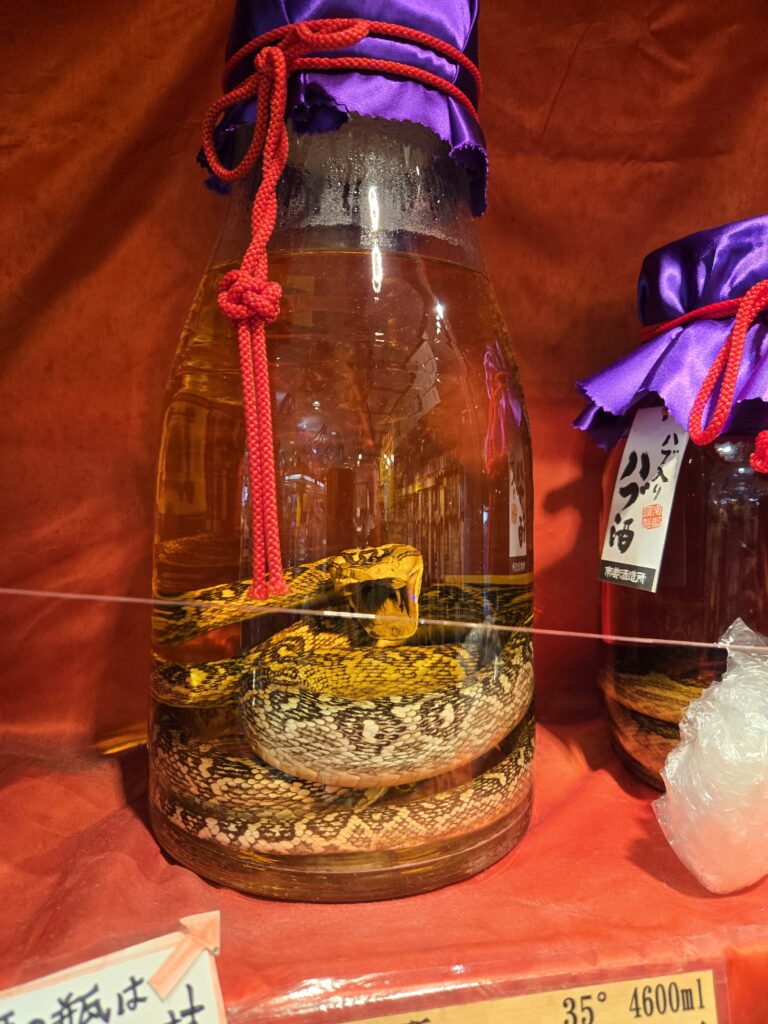 初めて本物のハブ酒を見たが迫力ある