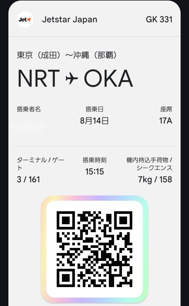 その日のお昼ごろに沖縄に行きたくなり、15:00の成田発のチケットを購入