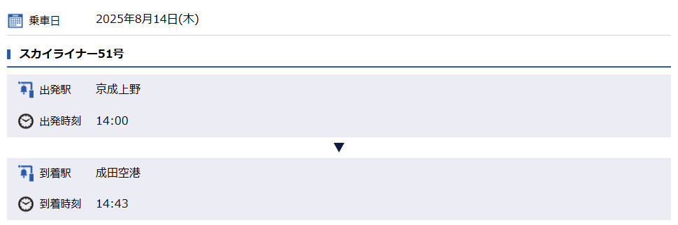 成田空港なのでスカイライナーも予約。全席指定席なので注意。